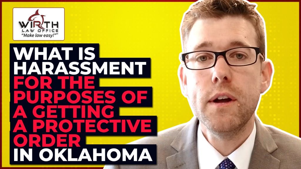 Video Transcribed: What is harassment for the purpose of getting a protective order granted in Oklahoma? I’m Oklahoma attorney James Wirth, and I’m about to answer that question for you. So what is harassment for the purpose of getting a protective order in Oklahoma? Well, luckily enough, it’s defined by statutes. So let me read that to you and then we kind of discuss some of the specifics.